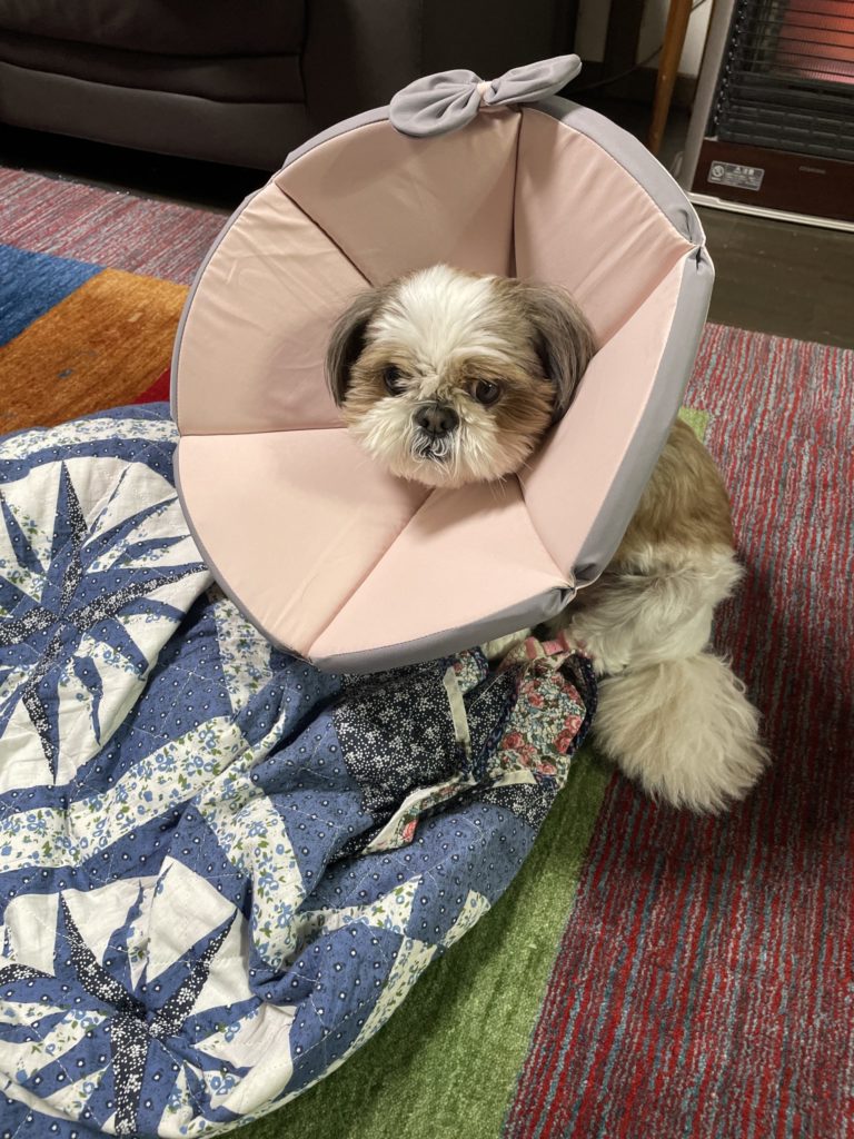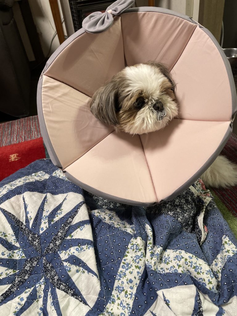 良かれと思って楽天で購入したエリザベスカラーは、ネフの首には少し窮屈そうだった。