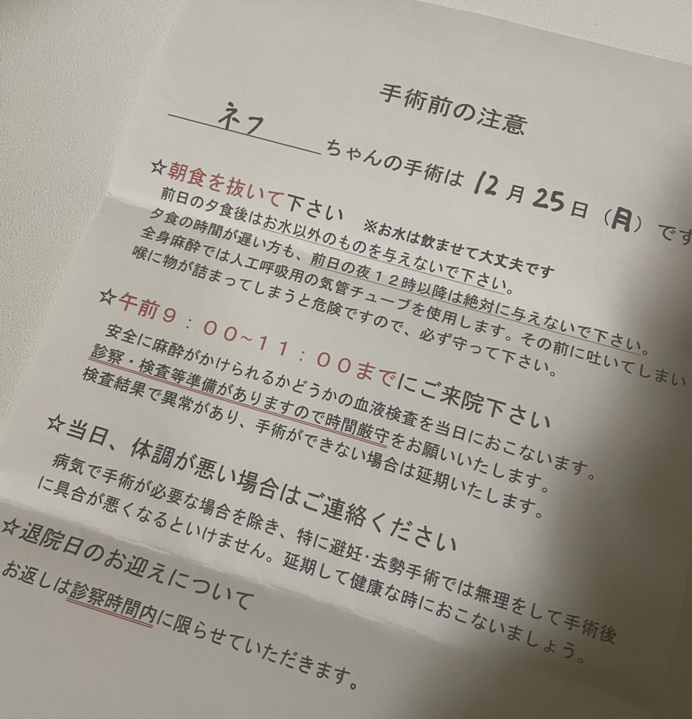 病院からのお願いは、夜ご飯後から何も食べないで