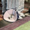 知らないケージの中で1人で寝れるかな…。